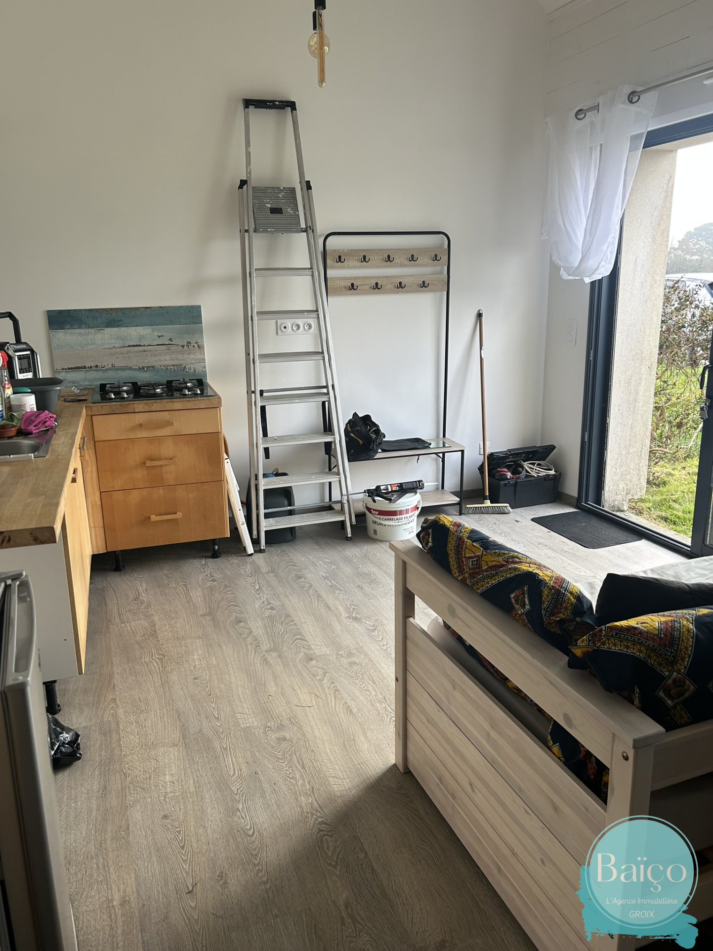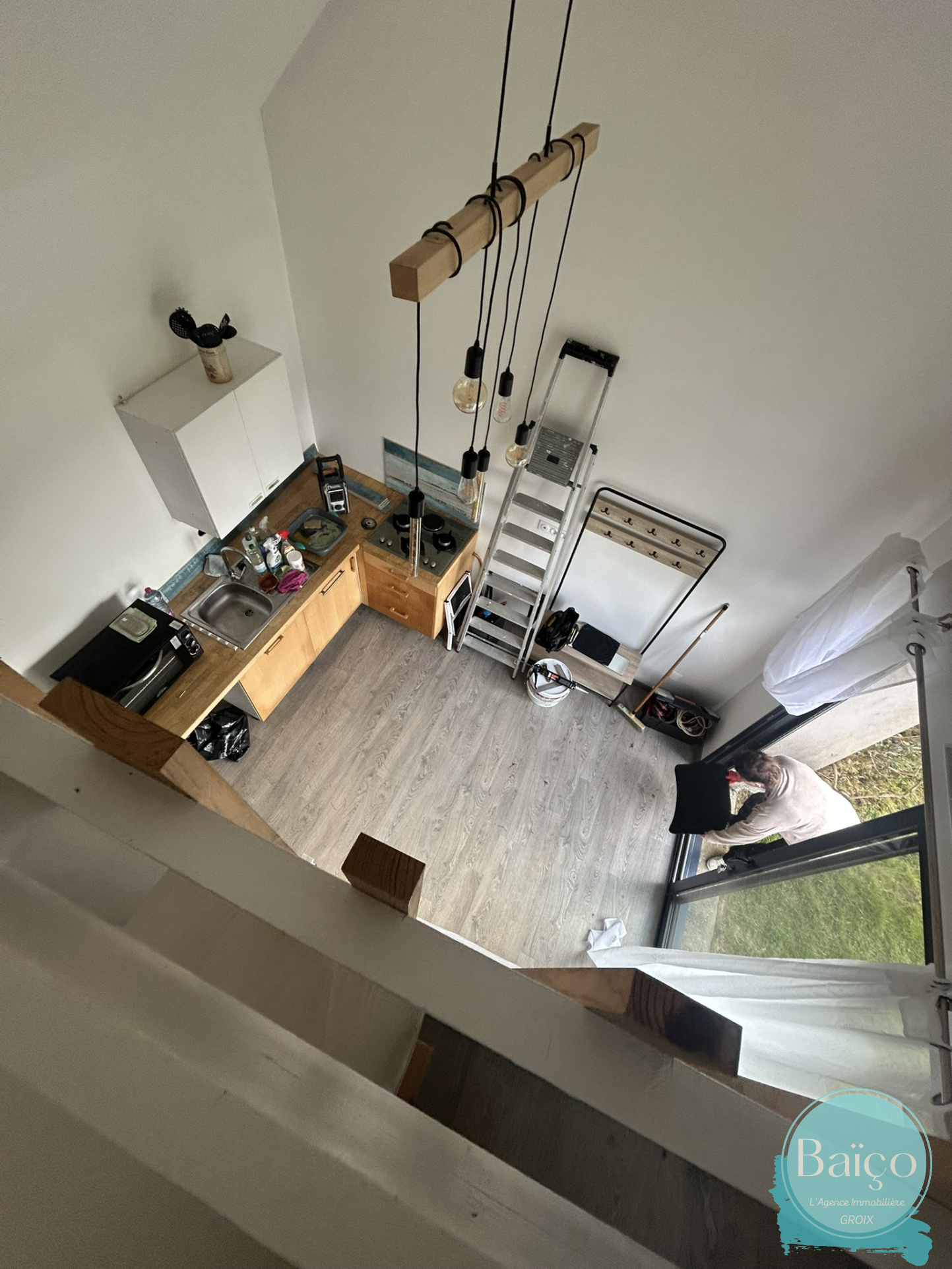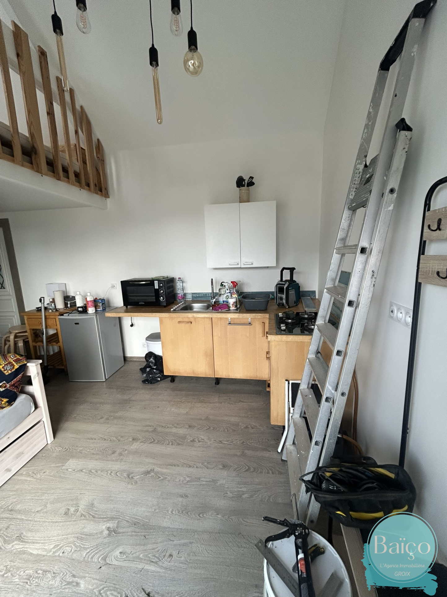 Studio d'habitation comprenant au rez-de-chaussée : une entrée, un salon avec kitchenette, une salle de douche avec WC et une mezzanine.