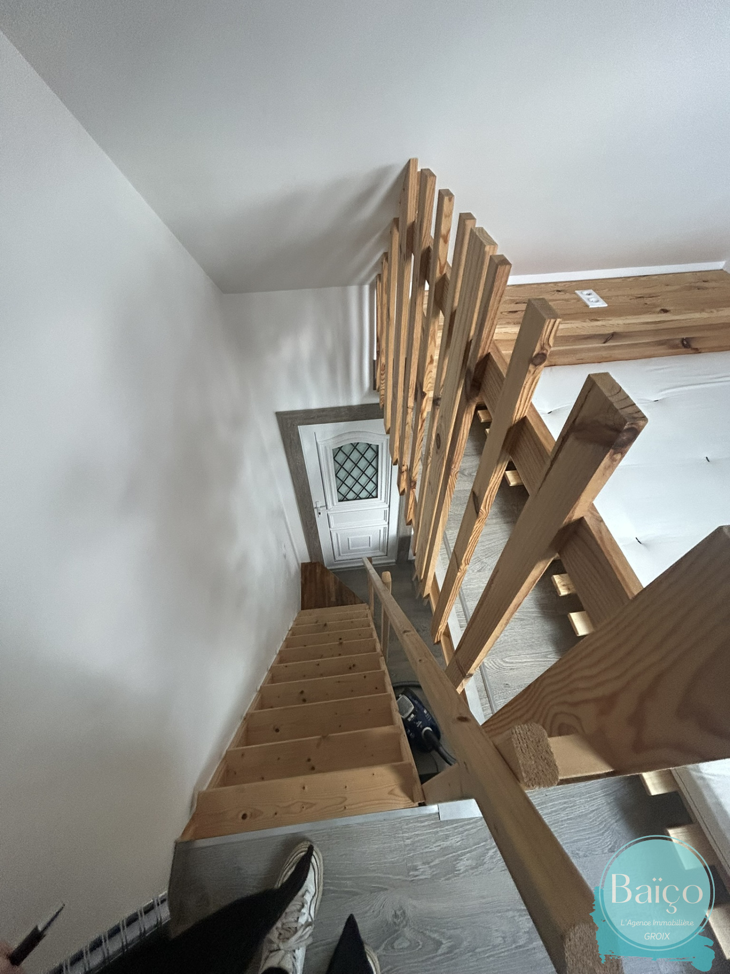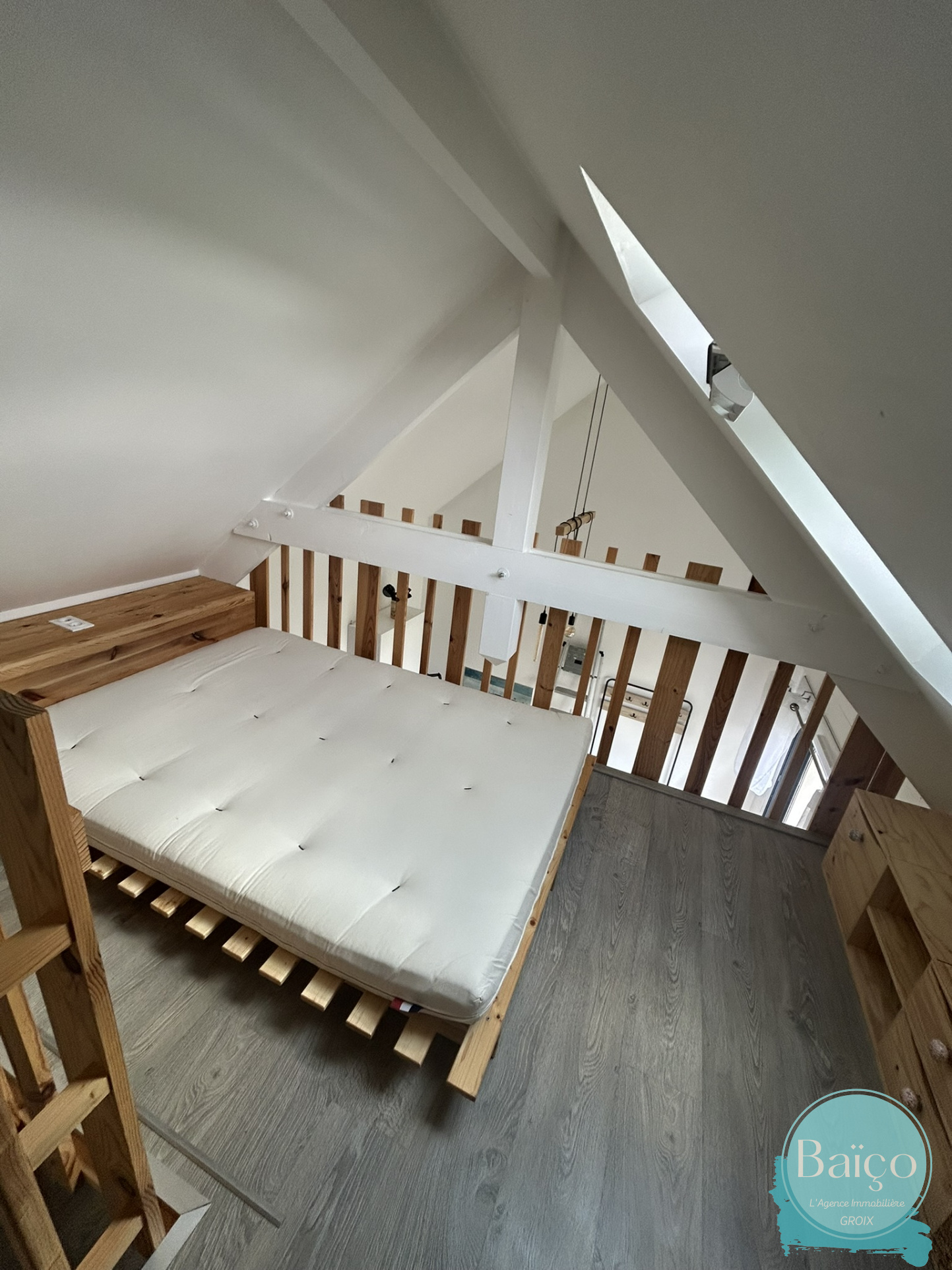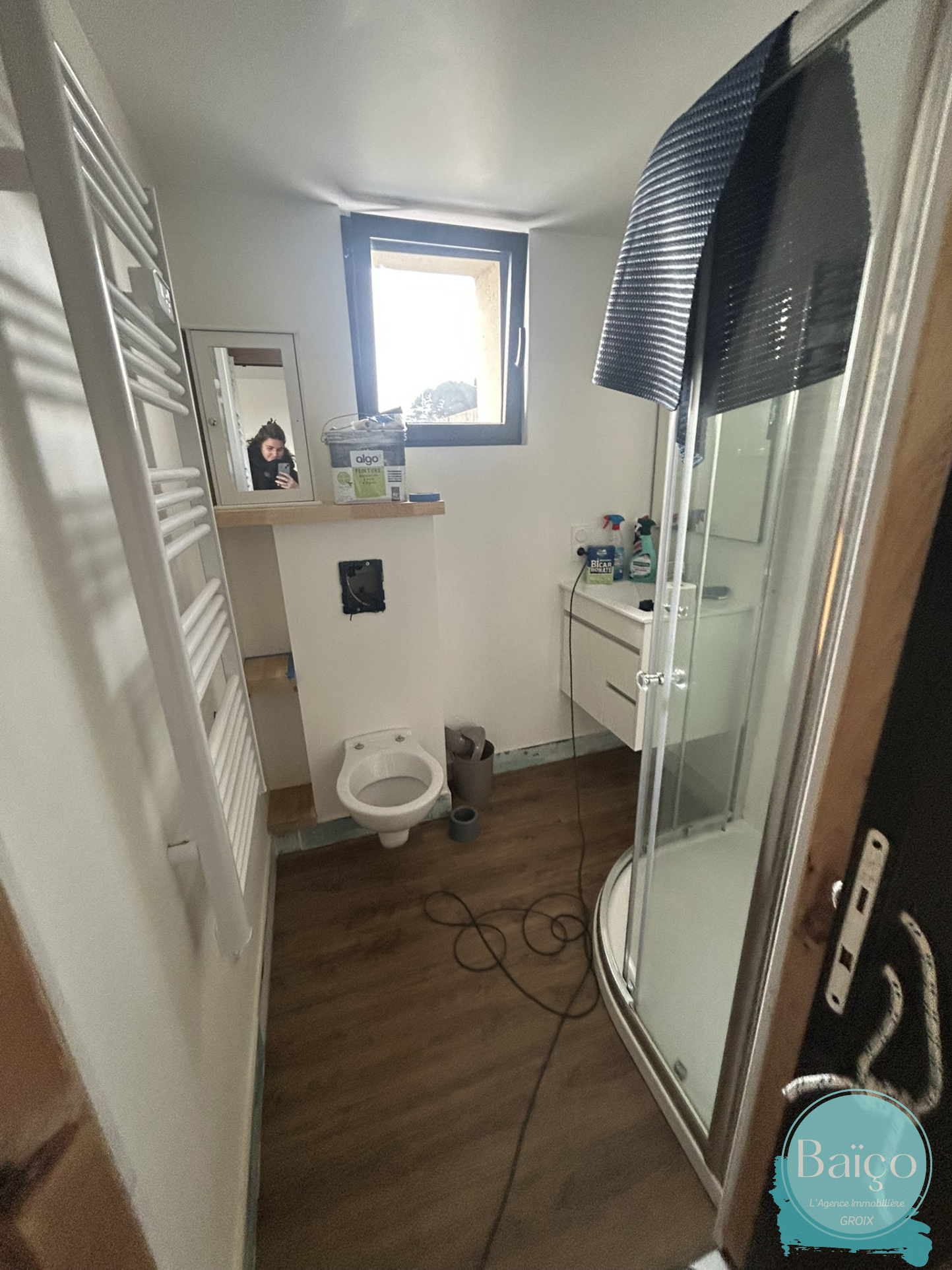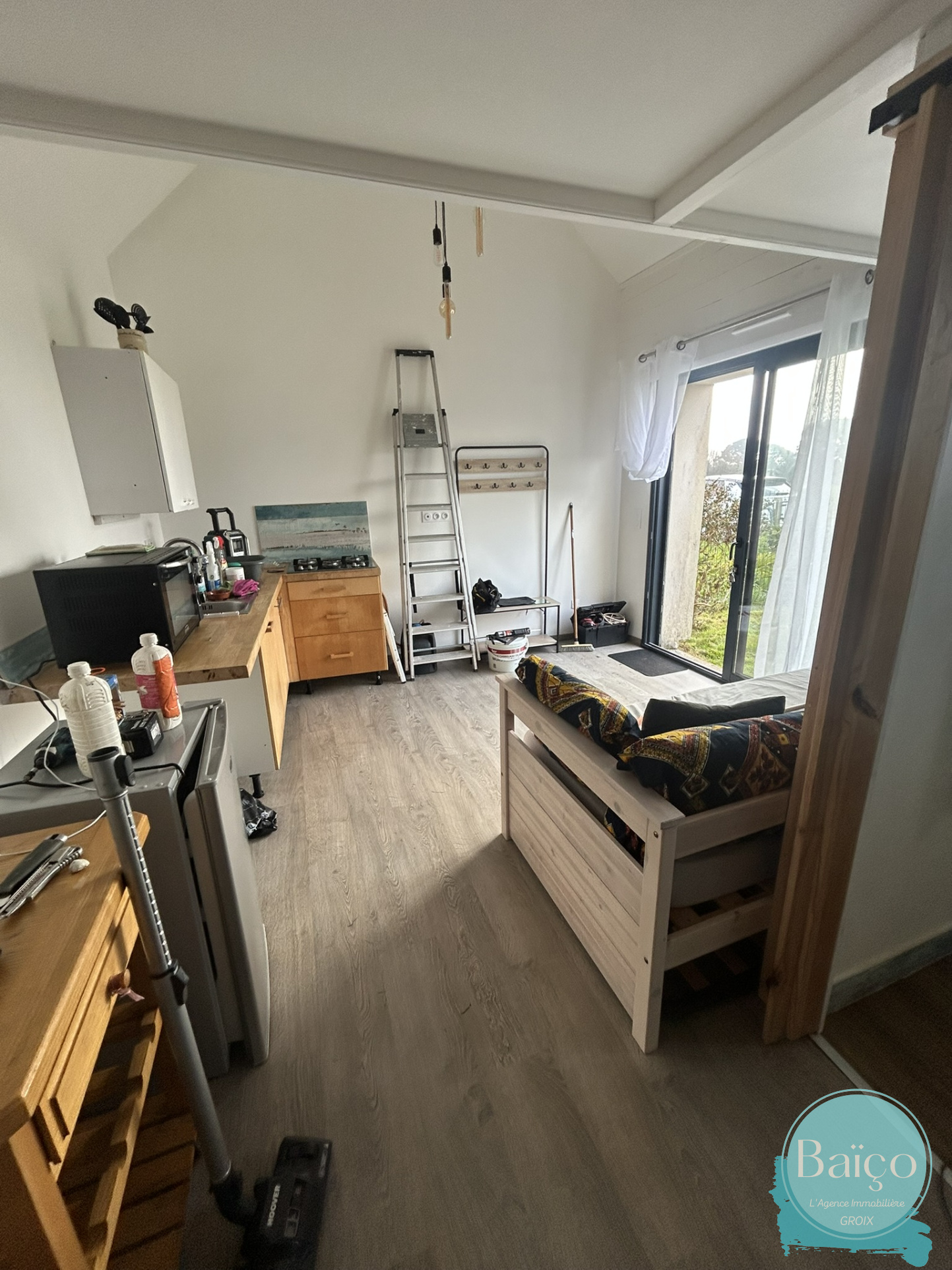 Studio d'habitation comprenant au rez-de-chaussée : une entrée, un salon avec kitchenette, une salle de douche avec WC et une mezzanine.