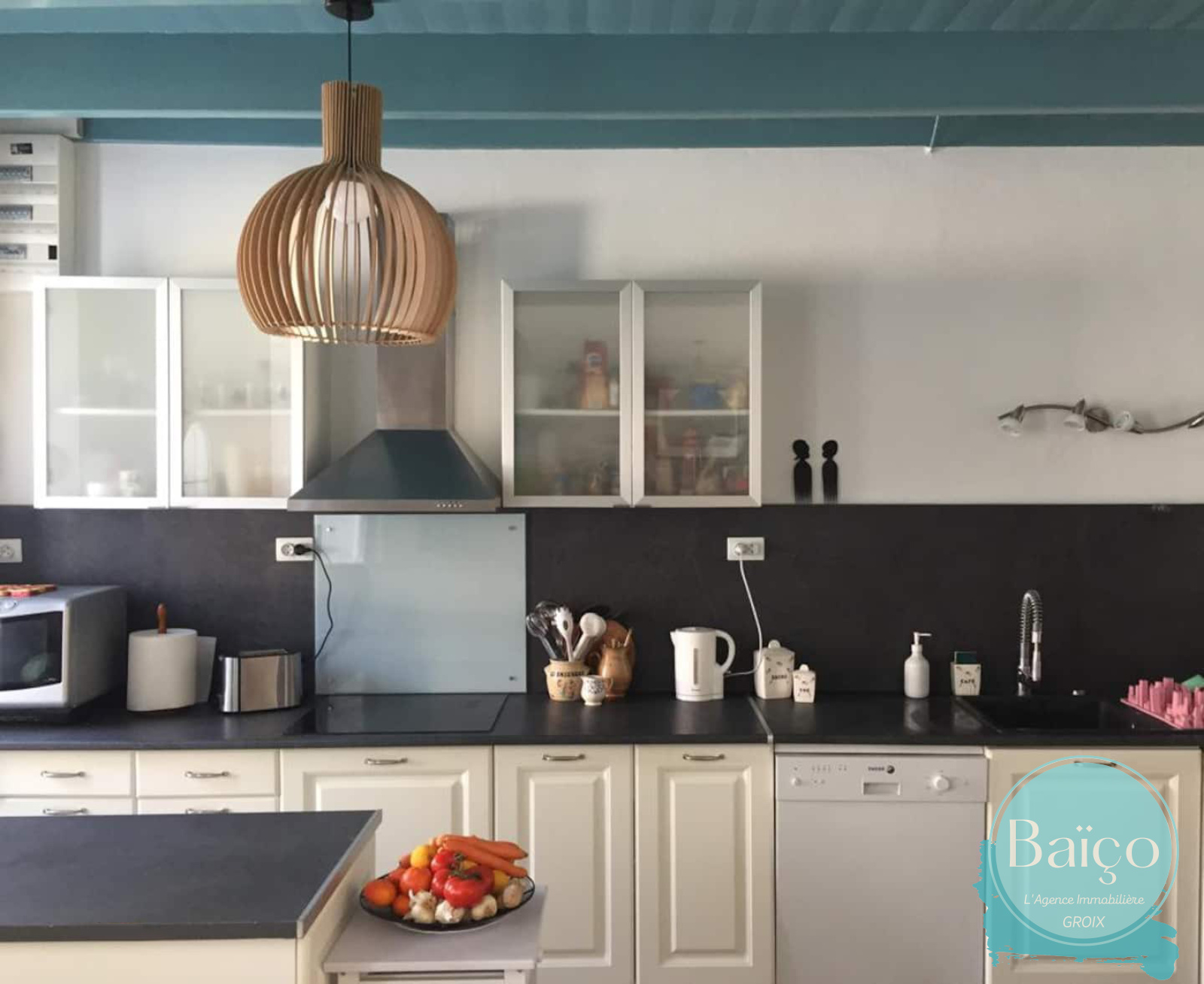 Au rez-de-chaussée, elle offre une agréable pièce de vie donnant directement sur une terrasse, idéale pour profiter de moments de détente en extérieur.