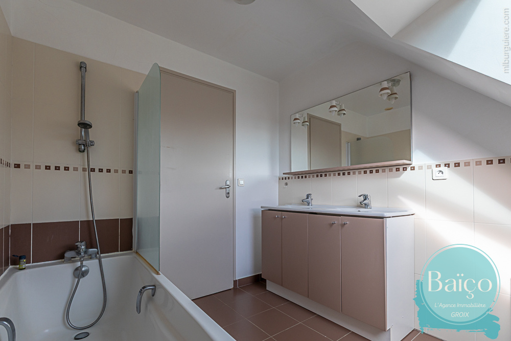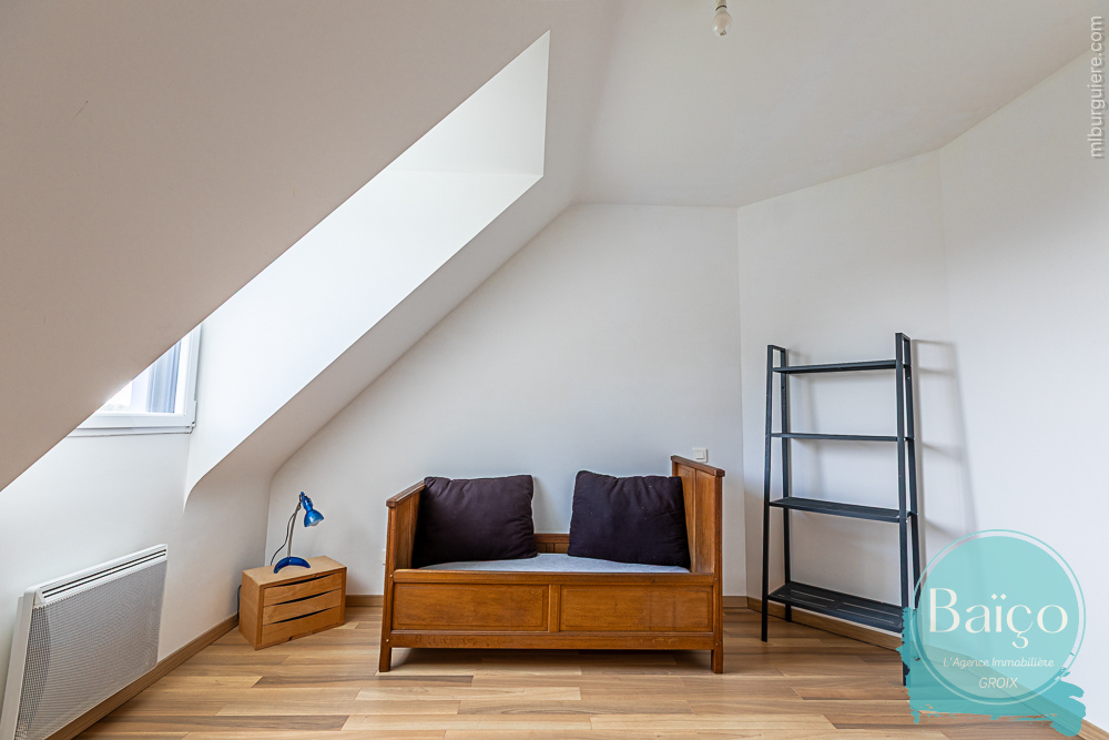À l’étage, trois chambres lumineuses composent un espace nuit confortable et fonctionnel, accompagné d’une salle de bains avec WC.